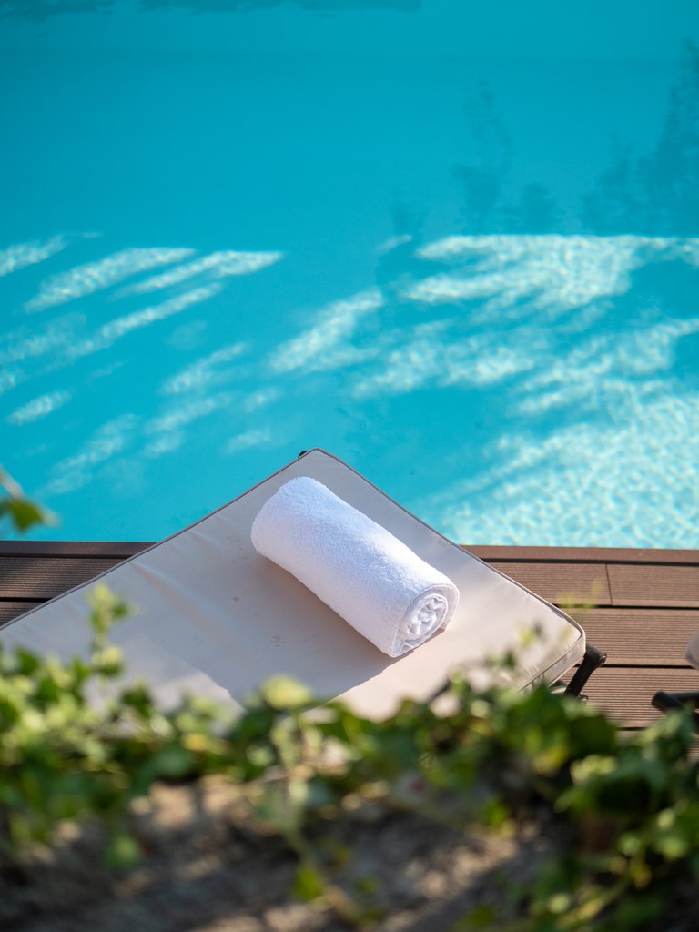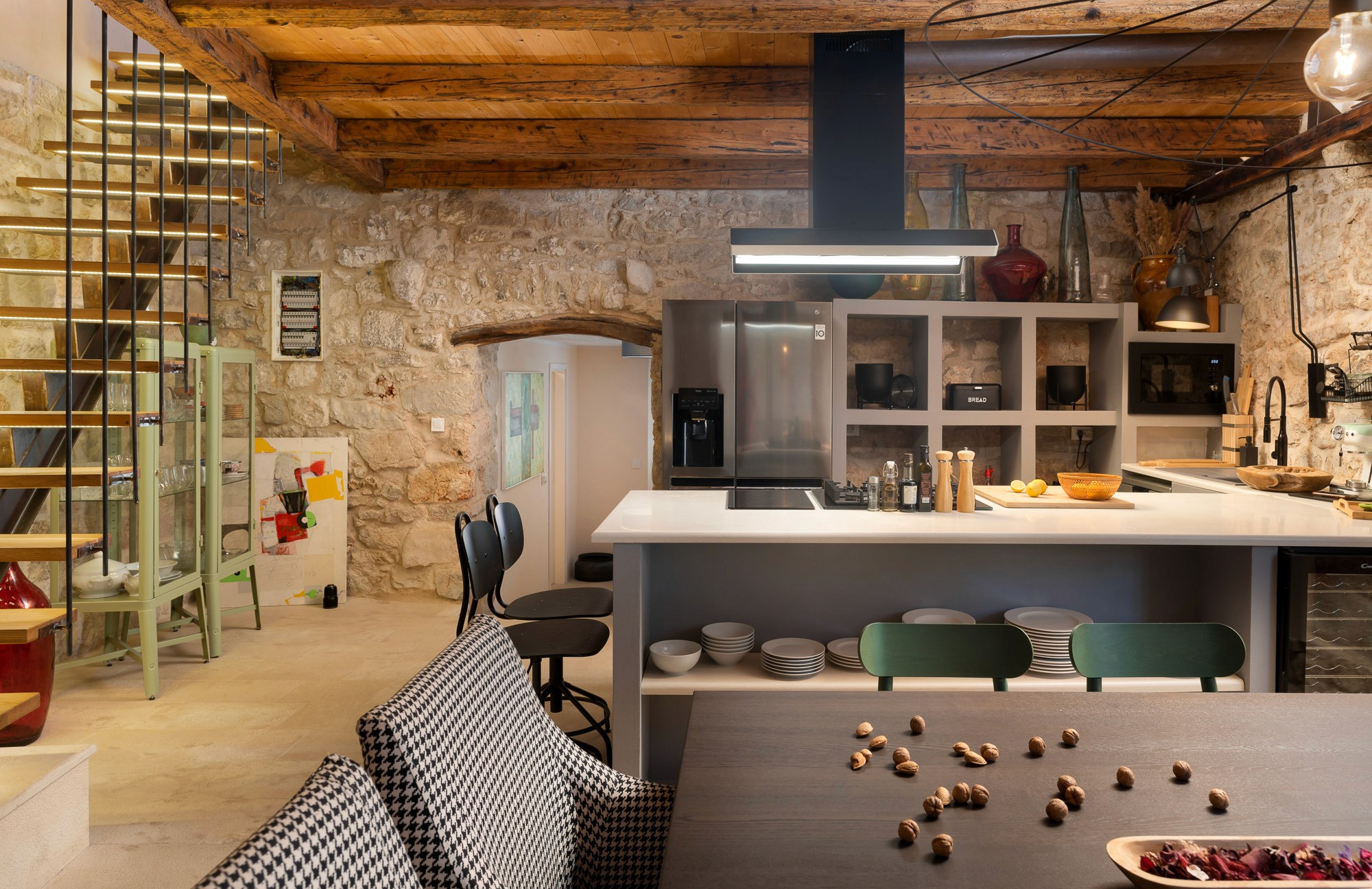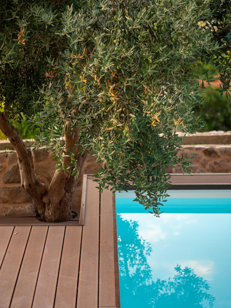 The largest house on our property accommodates a maximum of 10 people. It is a renovated old stone house consisting of 3 floors with a living room, kitchen, sauna and a gym, spacious terraces and a swimming pool.