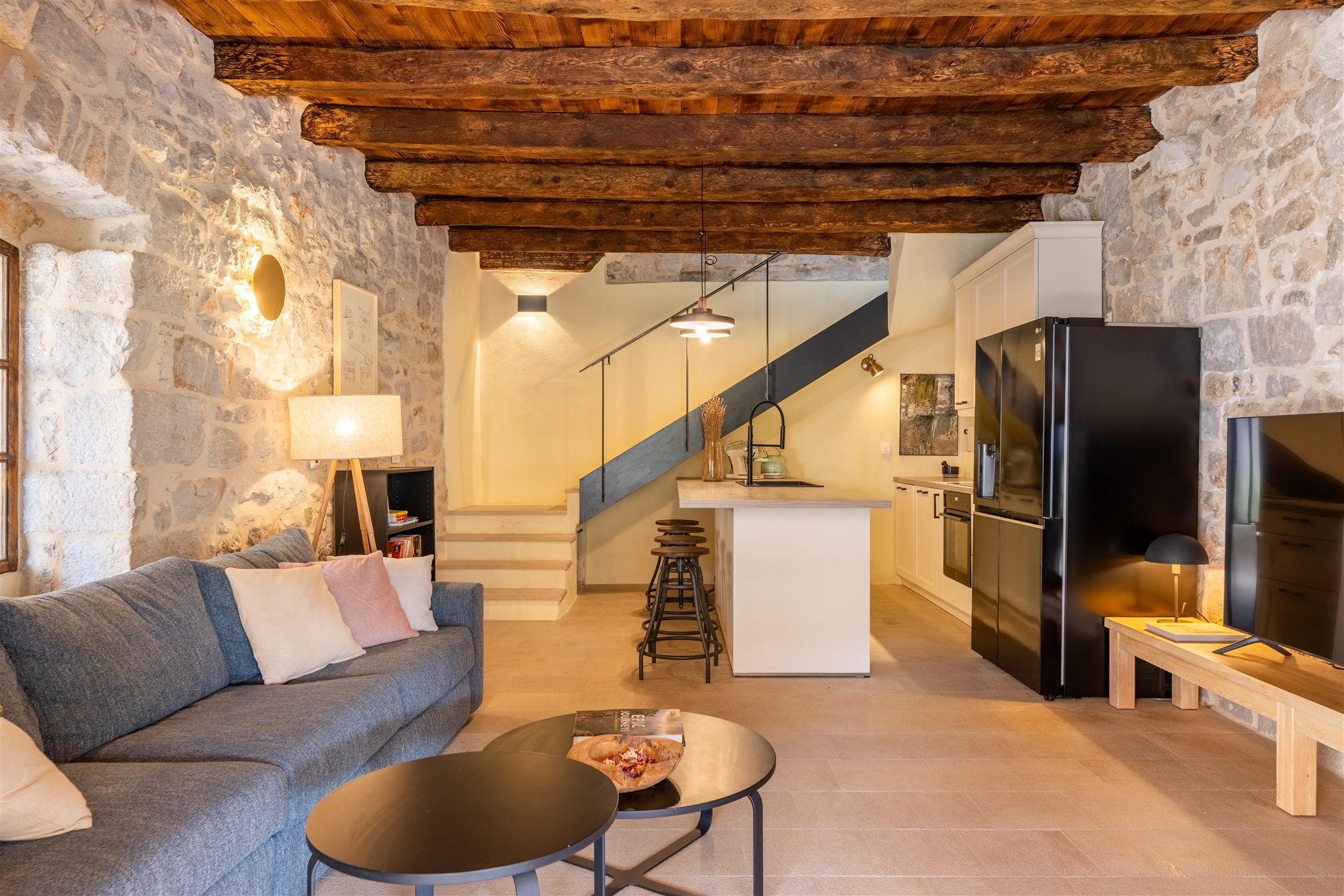 The smallest but the cutest third house accommodates a maximum of four people. This, as well as the other three, is a renovated old stone house. It consists of 2 floors with a living room, kitchen, bedroom, spacious terrace with a view of the sea and mountains.